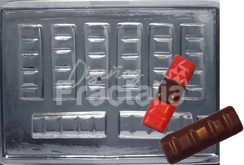 Cantidad de figuras = 8 Medidas figuras: 8.2×2.6×0.6 cms Peso chocolate: 14 g