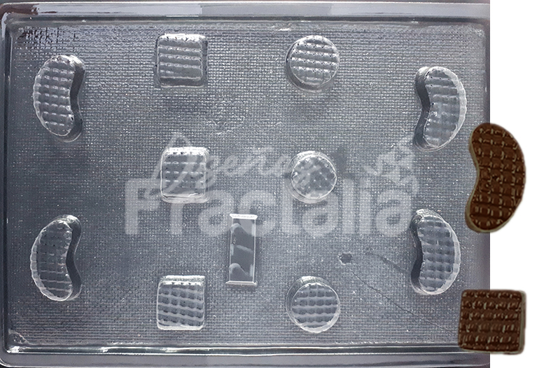 Cantidad de figuras = 10 Medidas figuras: Media Luna 3.9×2.1×0.9 cms Peso chocolate:6g