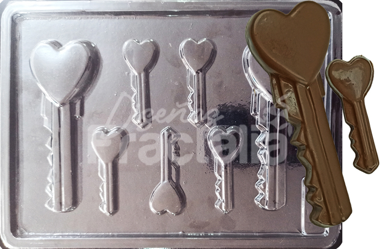 Cantidad de figuras = 7 Medidas figuras: Llave grande 12.4×4.8×1 cms Peso chocolate:Grande 34g, Peq 8 g