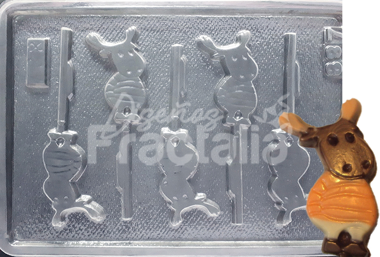 Cantidad de figuras= 5 Medidas figuras: 6.6×4.3×0.6 cms Peso chocolate: 12 g
