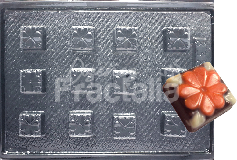 Cantidad de figuras = 12 Medidas figuras: 2.7×2.7×1.1 cms Peso chocolate: 8 g
