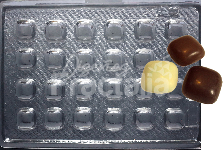 Cantidad de figuras = 24 Medidas figuras: 2.4×2.4×0.8 cms Peso chocolate: 4 g