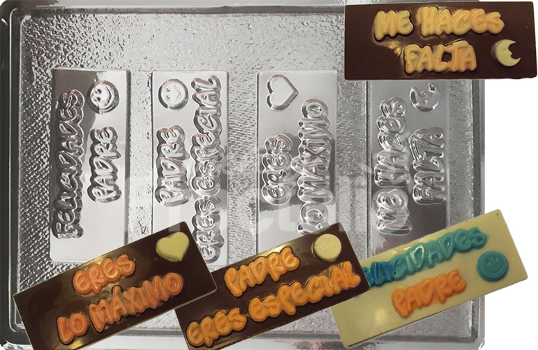 Cantidad de figuras = 4 Medidas figuras: 10x4x0.7 cms Peso chocolate: 25 g